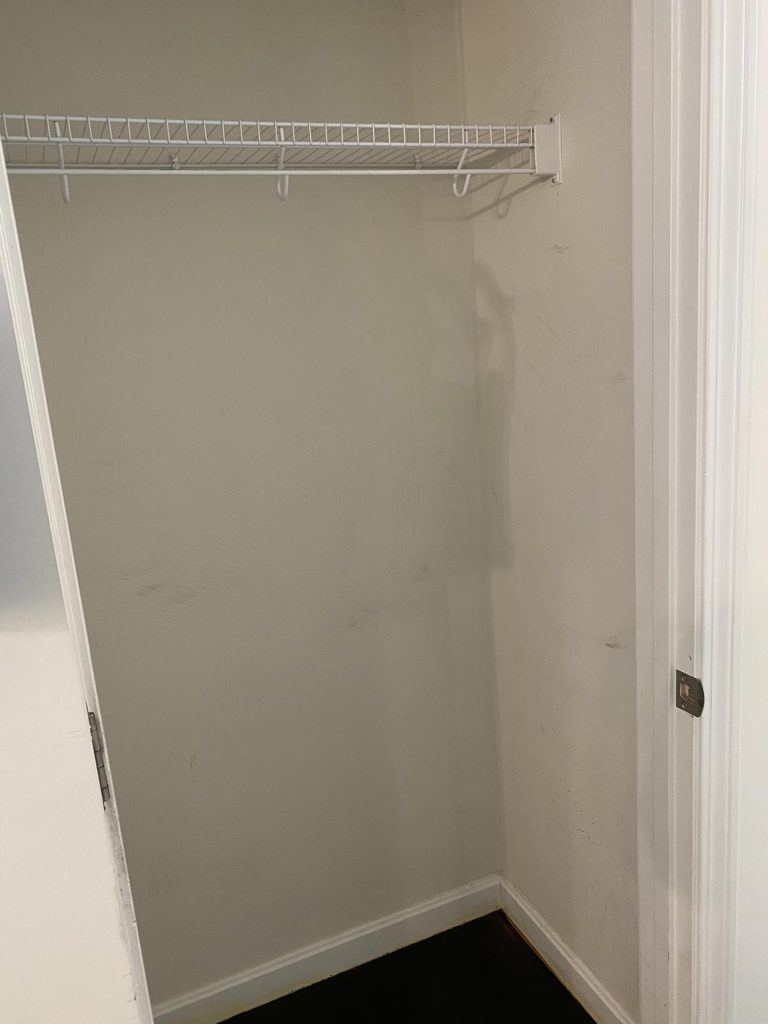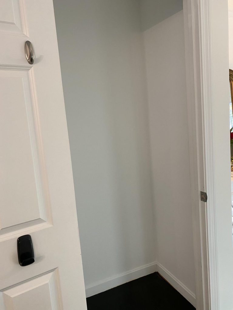 Emptying the closet went fast. The most tedious part was removing the existing wire shelf, filling in the holes and then painting it.