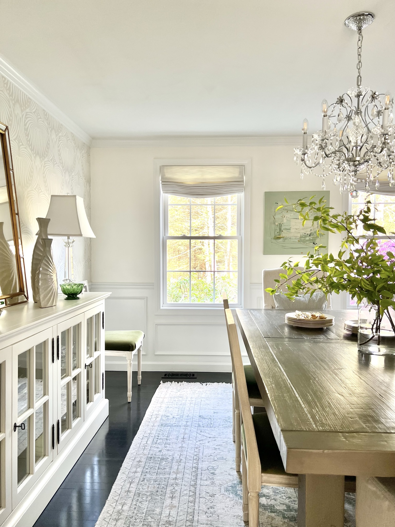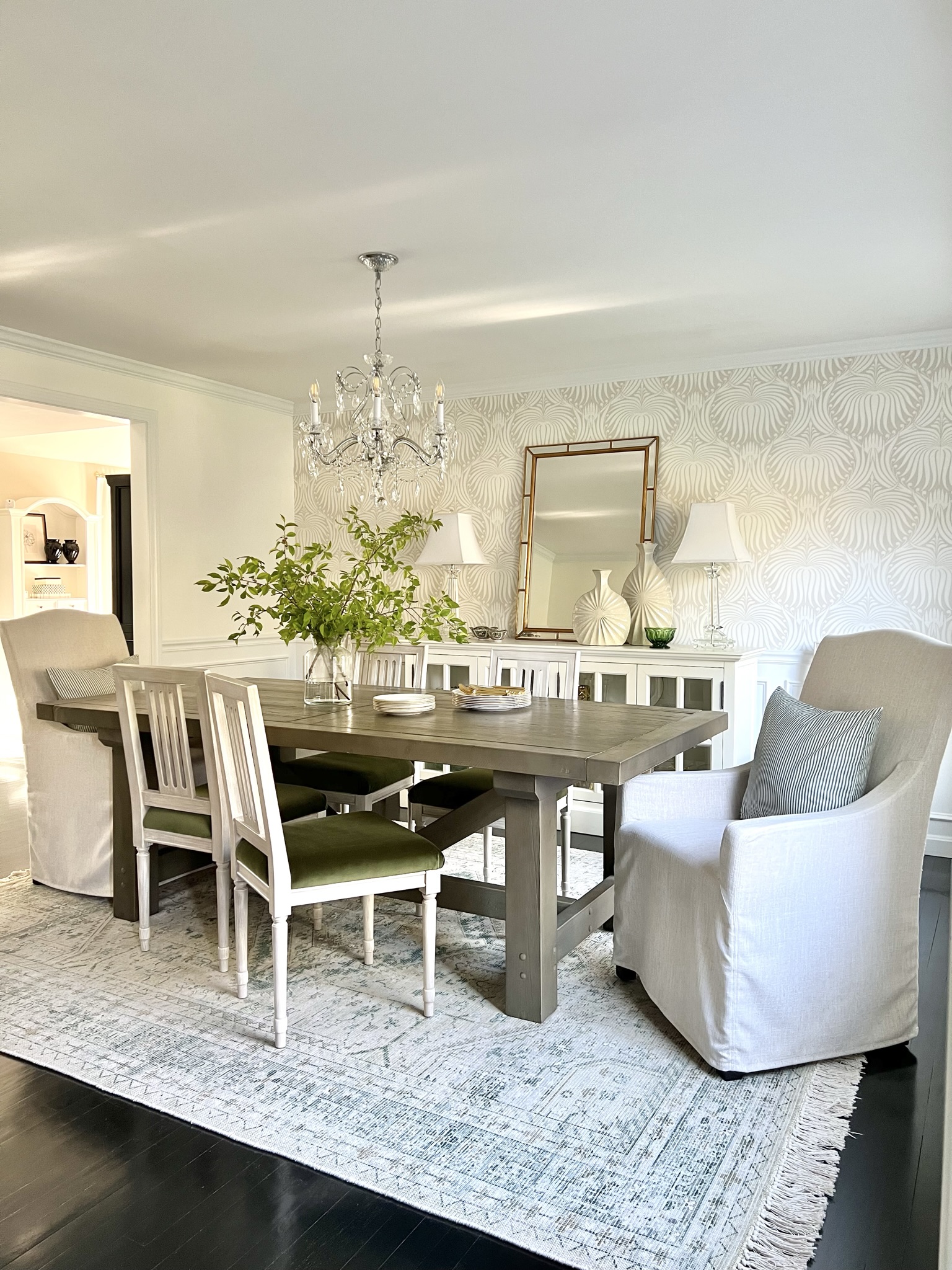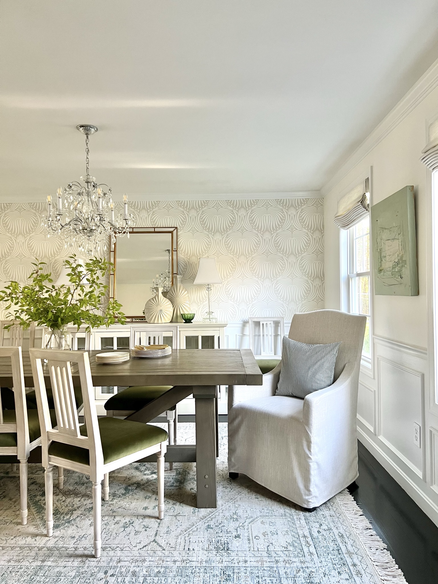Pops of Green Dining Room