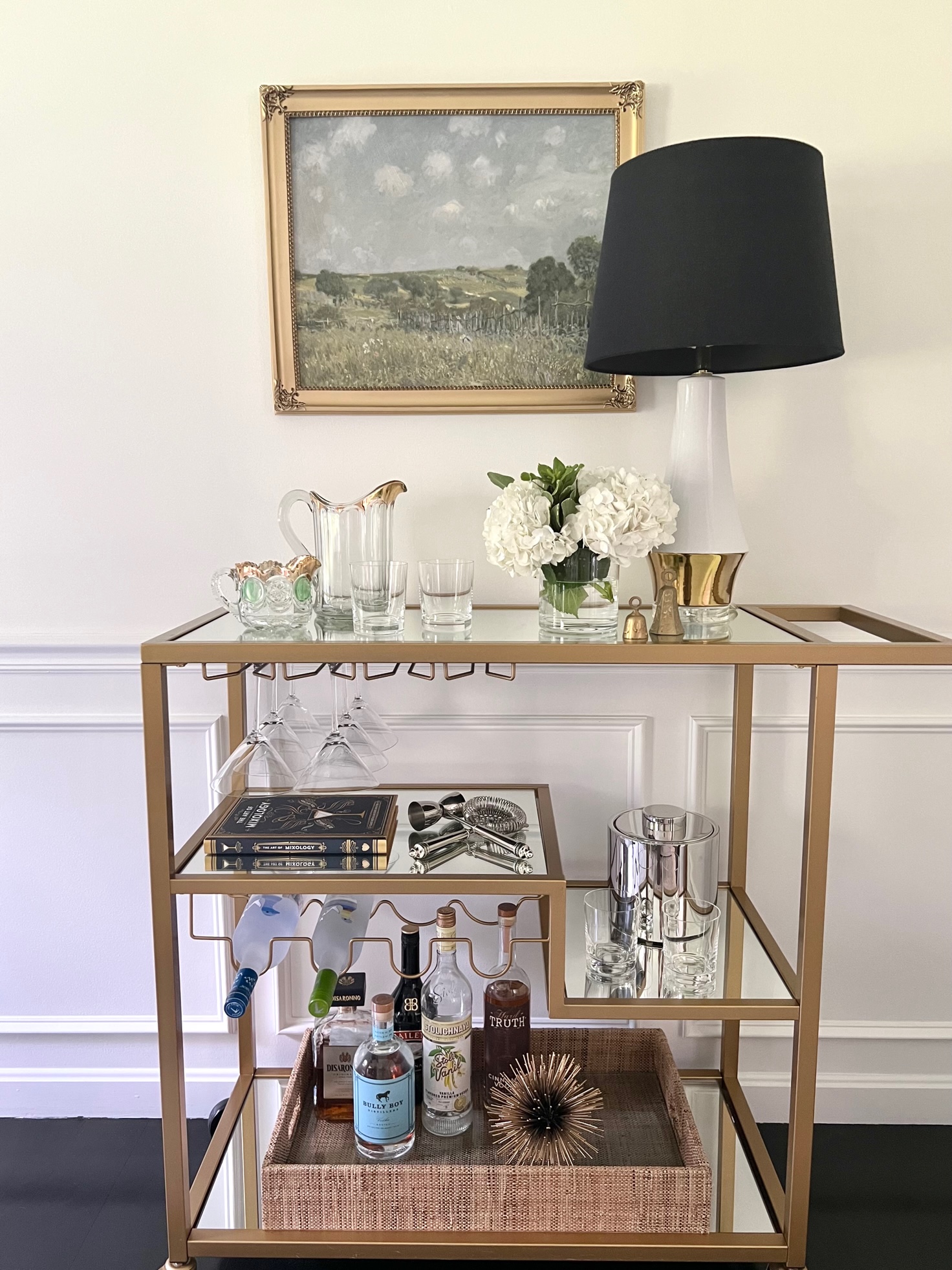 Our living room, styled for Christmas, with a wink